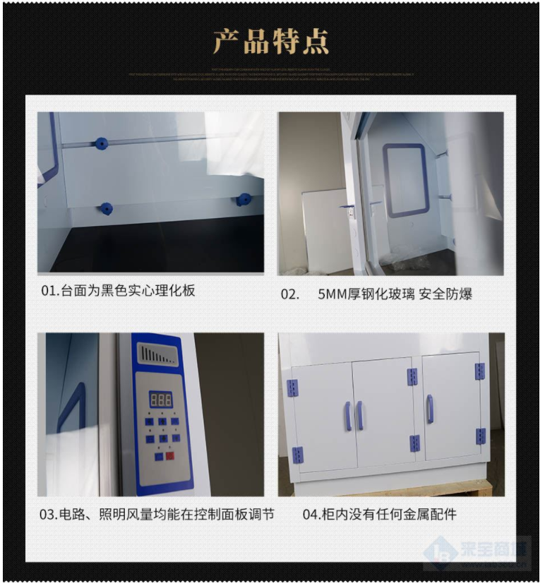 4、內(nèi)襯采用8mm厚PP板制做,一體焊接工藝,內(nèi)襯間有優(yōu)良的氣密性;導(dǎo)流板具有三級(jí)排風(fēng)設(shè)計(jì),保證在不同實(shí)驗(yàn)時(shí)產(chǎn)生的有害氣體比重不同時(shí),確保有害氣體完全排放;